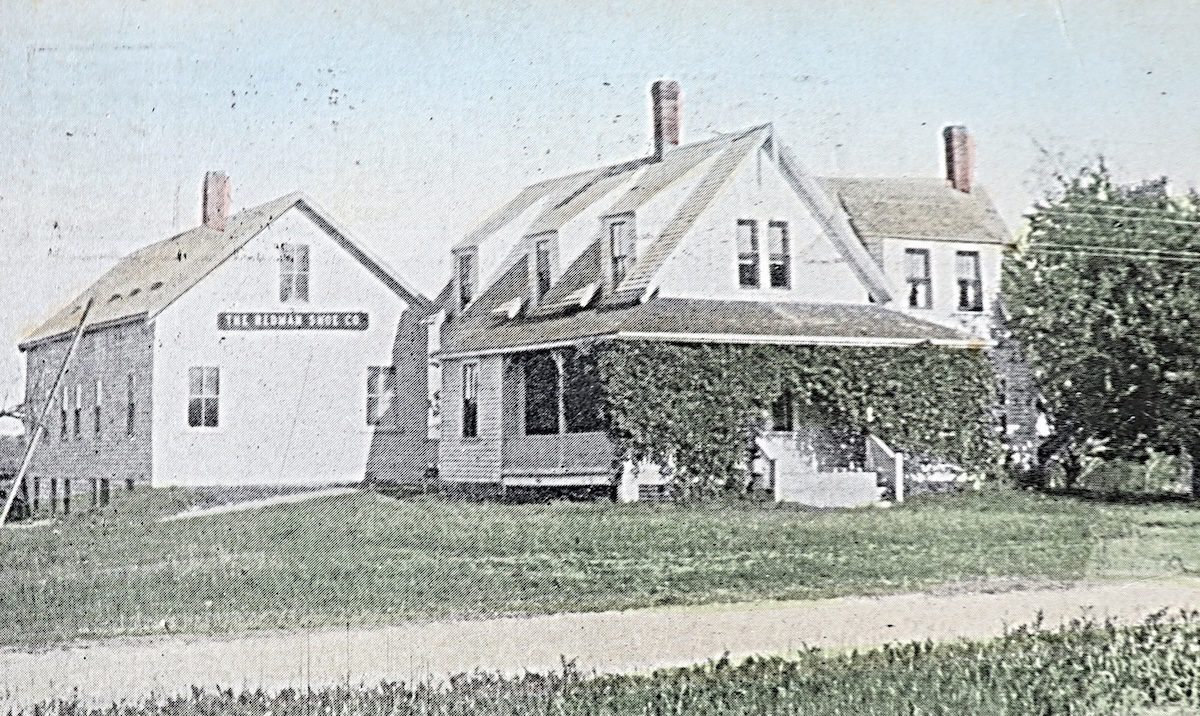 Starting in the fall of 1910 and operating at that location until 1935, Edward E. and William L. Redman built a shoe factory behind their house and started manufacturing ladies’ slippers (white wedding shoes). The 50’ x 20’ factory was two stories tall and employed 50 men and women with a sizeable payroll of $1000/week. Carl Bragg told the story that his mother made donuts early each morning and sent him down on his bike to sell them to the employees for their work break.