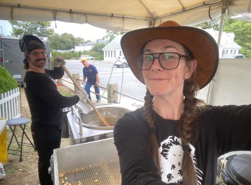 Ashley Mullen’s family has deep roots in the world of crafts. Her father, a stained glass artist, picked up the hobby again in 2020 and now sells handmade nightlights on Etsy and at indoor shows. Ashley herself started making and selling kettle corn—known as Cauldron Corn—back in 2015.
