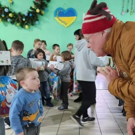 Alex Ray, owner of the Common Man family of restaurants, volunteers for the nonprofit Common Man for Ukraine and the Rotary Club of Plymouth, are on their way home from a three-day trip in the war-torn country to deliver holiday gifts, goodies, and much-needed supplies to 1,300 orphans.