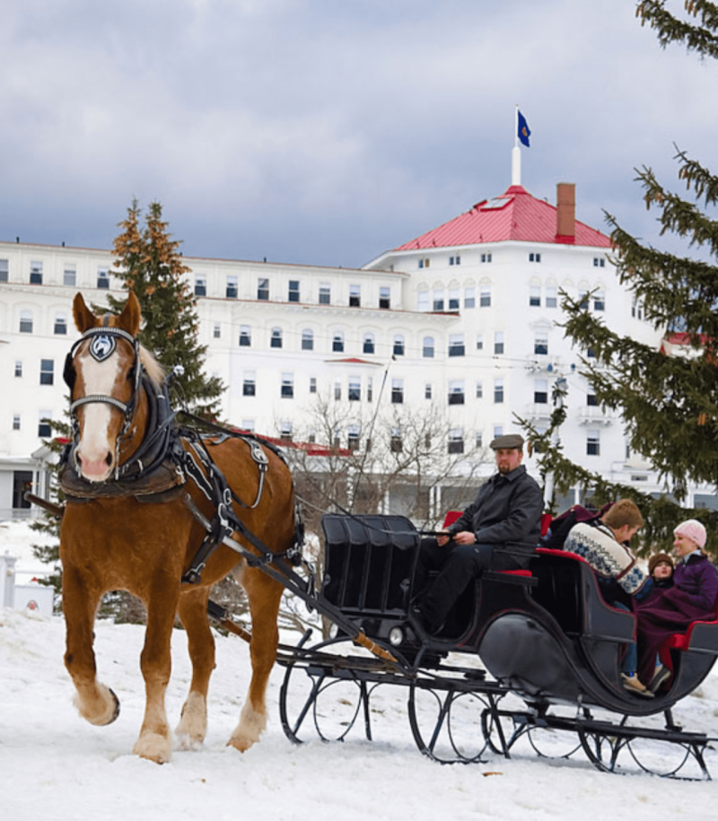 Omni Mount Washington Resort, 310 Mount Washington Hotel Rd., Bretton Woods, (603) 278-1000. If there’s snow on the ground you can take a horse-drawn sleigh ride through the countryside at the Omni Mount Washington Resort in Bretton Woods which is surrounded by the majestic White Mountains. Fun fact: Bretton Woods was the site of the United Nations Monetary and Financial Conference in 1944 which gave its name to the Bretton Woods system and led to the establishment of both the World Bank and the International Monetary Fund in 1945. For sleigh reservations and details call the Bretton Woods Stable (603) 278-3388.