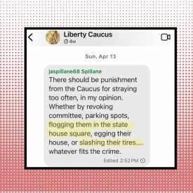 A leaked encrypted text message from a Signal group chat featuring prominent New Hampshire conservative lawmakers appears to show a state representative encouraging the use of violence against fellow Republicans for voting against the direction of leadership. In the chat, dated April 13 of this year, a username that appears to belong to State Representative…
