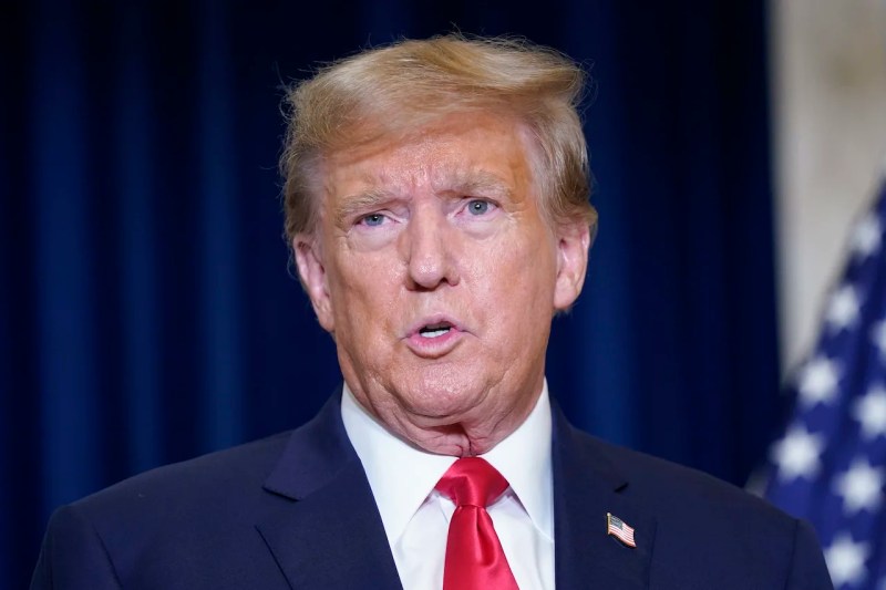 Former President Donald Trump speaks to the media at a Washington hotel, Tuesday, Jan. 9, 2024, after attending a hearing before the D.C. Circuit Court of Appeals at the federal courthouse in Washington. (AP Photo/Susan Walsh)