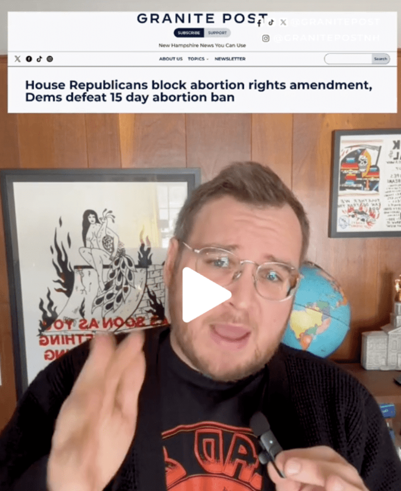 Got 60 seconds? We’ll get you caught up on recent abortion legislation in New Hampshire, including how Republicans recently blocked protections to abortion access present in every other state in New England. @granitepost Got 60 seconds? We'll get you caught up on recent abortion legislation in New Hampshire, including how Republicans recently blocked protections to…