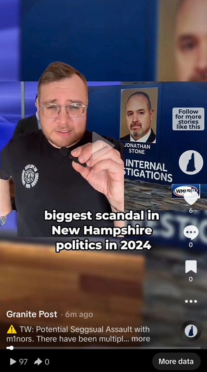 @granitepost ⚠️ TW: Potential Seggsual Assault with m1nors. There have been multiple new developments in the scandal around NH State Rep Jon Stone. Get caught up on the situation and check out our updates throughout the week. #NHPolitics #JonStone #WMUR ♬ original sound – Granite Post